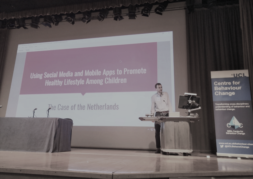 My morning journey from Amsterdam was merely one of the testaments to the many public health issues we are currently facing. We need continuous improvement and innovation of our health behaviour change strategies and applications to keep up with the ever-evolving societal problems. And the UCL’s conference on “Behaviour Change for Health: Digital and other Innovative Methods”, during which I also had the honour to present my own research on Dutch healthy lifestyle interventions using mobile apps and social media, seemed like the perfect place to stimulate such thoughts.